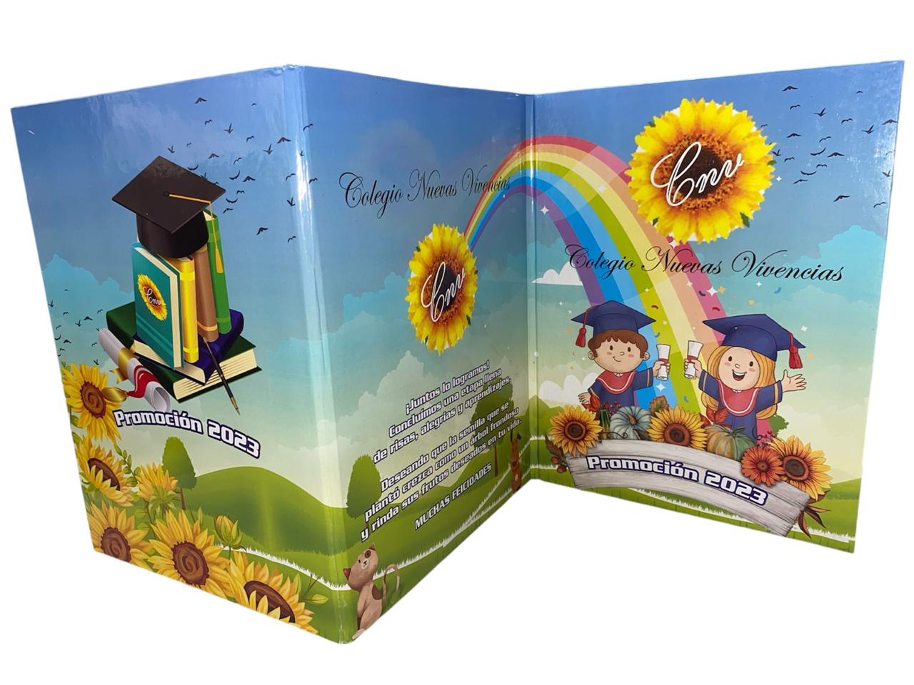 Carpeta con tapa dura y diseño infantil escenográfico. Incluye la foto del niño como protagonista. Ideal para grados de jardín.